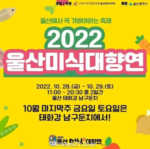 ▲ 사진=울산광역시울산시는 10월 28일(금)과 10월 29일(토) 양일간, 태화강국가정원 남구둔치에서 음식문화축제 ‘2022 울산 미식(美食) 대향연’행사를 개최한다고 밝혔다.
