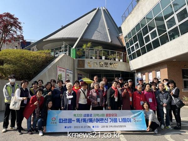 ▲ 사진=구리시 제공구리시(시장 백경현)는 지난 27일 교문1동 지역사회보장협의체(위원장 구경자) 주관으로 독거어르신 20명과 봉사자 20명이 함께하는 가을나들이를 추진했다.