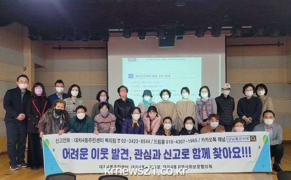 김선주 대치4동장은 “추운 겨울이 되기 전 지역 주민과 함께 어렵게 지내는 저소득 위기가구를 발굴해 촘촘한 복지안전망을 구축하고 나눔을 실천하겠다”고 말했다.