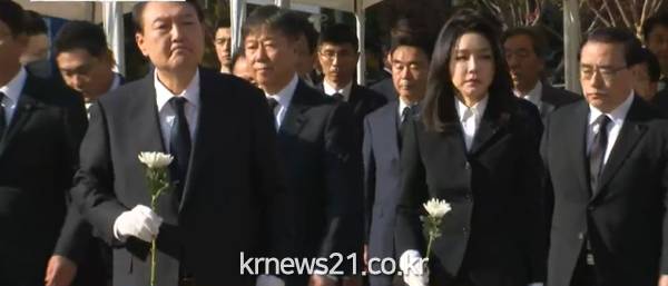 ▲ 사진=KBS NEWS 영상 캡처윤석열 대통령은 오늘 오전, 부인 김건희 여사와 함께 서울광장에 마련된 합동분향소를 방문했다.