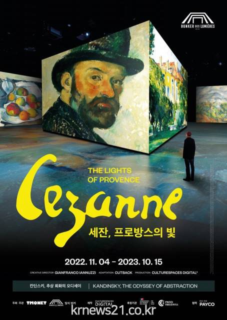 제주 성산에 있는 빛의 벙커에서 새롭게 선보이는 전시 세잔, 프로방스의 빛은 11월 4일부터 2023년 10월 15일까지 진행된다. 이번 전시는 색채와 형태로 사물의 본질을 탐구한 현대 회화의 아버지이자 후기 인상주의 예술가인 폴 세잔의 작품을 생동감 넘치는 빛과 음악으로 재해석했다.