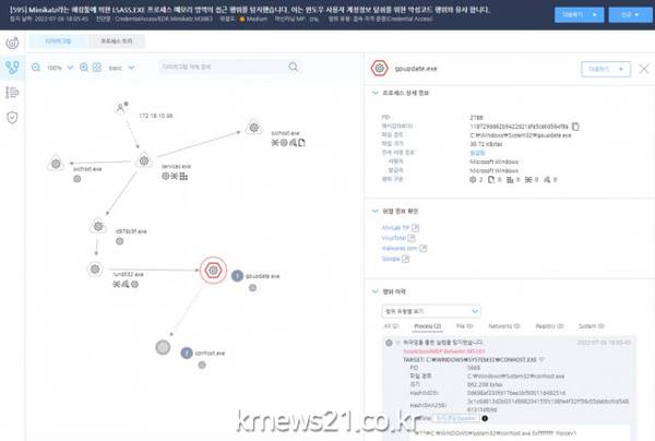 또한 안랩 EDR 2.0은 자체 행위 기반 엔진을 고도화한 EDR 전용 엔진을 도입해 엔드포인트에서 발생하는 다양한 정보에 대해 의심 행동을 중심으로 다각적인 분석 결과를 제공한다. 보안 관리자는 안랩 EDR 2.0이 제공하는 시스템, 파일, 프로세스별 상세 정보를 바탕으로 체계적인 탐지 및 분석을 할 수 있다. 안랩 EDR 2.0의 정교한 탐지룰과 수집 로그의 범위 설정 기능으로, 과도하게 뜨는 얼럿(알림)도 줄였다.