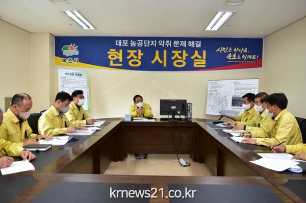 이러한 의지를 반영하여 속초시는 10월 31일부터 대포농공단지 내 젓갈콤플렉스 센터에 ‘현장 시장실’을 설치・운영하며 산업단지 악취로 인한 지역주민의 고통을 공감하고 현실적인 문제를 정확하게 파악하여 악취 해소대책을 모색한다는 계획이다.