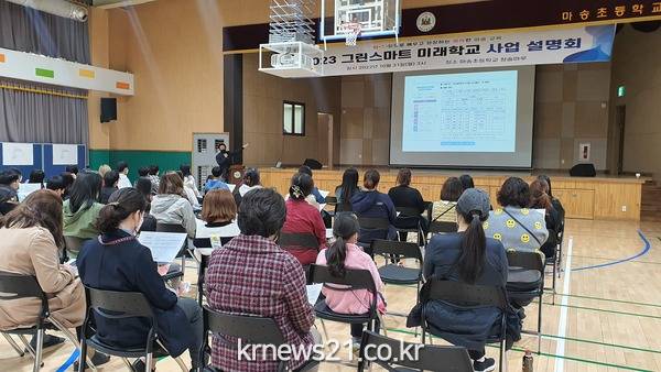 ▲ 사진=2022 그린스마트 미래학교 사업설명회김포교육지원청 마송초등학교(교장 나인호)는 10월 31일(월) 강당에서 학생, 학부모, 교직원, 지역주민을 대상으로 ‘2023 그린스마트 미래학교 사업설명회’를 개최했다고 밝혔다.