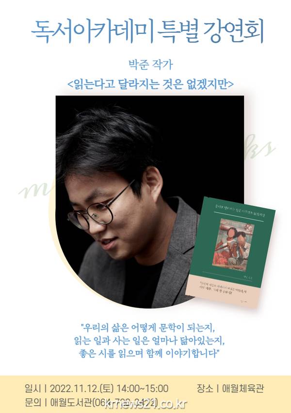 ▲ 사진=제주시제주시 애월도서관은‘읽는다고 달라지는 것은 없겠지만’라는 주제로『2022년 독서아카데미』 특별 강연회를 운영한다.