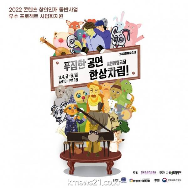 ▲ 사진=재단법인 춘천인형극제재단법인 춘천인형극제(이사장 조현산)가 유니마코리아, 한국인형극협동조합과 함께 한국콘텐츠진흥원의 콘텐츠 창의인재동반사업의 수료생을 대상으로 우수 프로젝트를 지원, 인형극 시장 진출 활성화와 성공사례 창출에 나섰다.