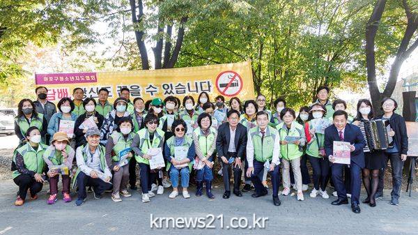 박강수 마포구청장은 “이번 금연구역 지정으로 많은 분들이 간접흡연 등 유해환경으로부터 건강을 보호하고 쾌적한 거리 조성에 도움이 될 것으로 기대한다”며 “앞으로도 다양한 금연정책을 추진해 마포구가 전국의 금연문화 분위기를 만드는데 선도적인 역할을 하도록 노력하겠다”고 말했다.