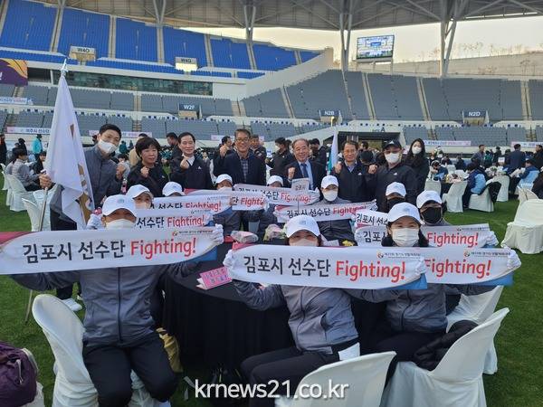 김병수 김포시장은 경기도생활체육대축전을 마치고 돌아온 선수단에 “그 어떤 재미있는 것도 직업이 되면 더 이상 즐기기 어렵다. 체육을 직업이 아니라 취미로 즐기시는 여러분이 건강과 즐거움을 다가진 진정한 승리자”라며 “50만 시민을 대표하는 선수로서 끝까지 최선을 다하는 열정을 보여주셔서 감사하다.”고 격려했다.