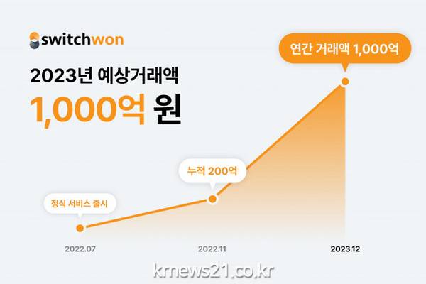 ▲ 사진=스위치원국내 스타트업 최초의 환테크 플랫폼 ‘스위치원’이 서비스 출시 3개월 반 만에 누적 거래액 200억원 돌파하며 2023년 연간 거래액 규모를 1000억원 이상으로 무난히 예상한다고 16일 밝혔다.