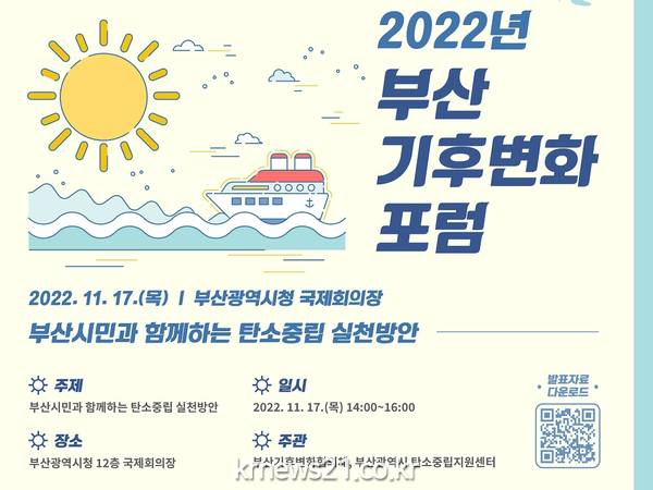 ▲ 사진=부산광역시부산시(시장 박형준)는 오는 11월 17일 오후 2시 시청 국제회의장에서 ‘부산시민과 함께하는 탄소중립 실천방안’을 주제로 <2022년 부산 기후변화 포럼>이 개최된다고 밝혔다.