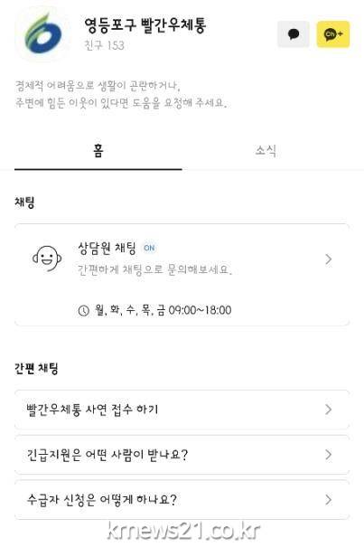 위기에 처한 당사자나 도움이 필요한 이웃이 있는 경우, ‘카카오톡’ 플러스 친구 검색창에 ‘영등포구 빨간우체통’을 검색하고 채널을 추가해서 신고하면 된다. 누구나 1:1 채팅을 통해 사연을 제보할 수 있으며, 키워드 대화를 통해 간단한 신청방법 안내와 복지상담도 제공받을 수 있다.