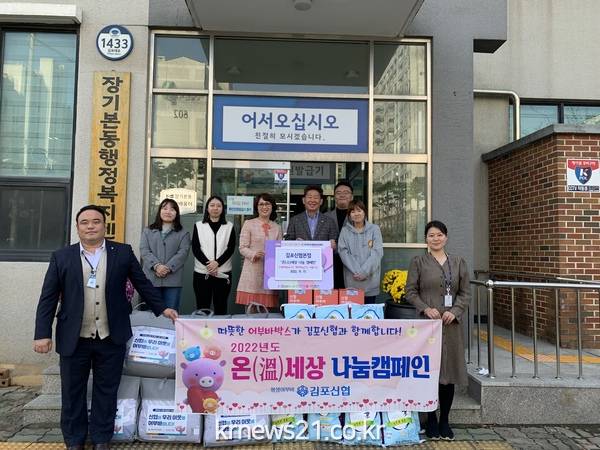 이에 박경애 장기본동장은 “어려운 이웃을 위해 꾸준한 나눔을 실천해주신 김포신협본점에 감사드린다”며 “추워지는 날씨에 따뜻한 온기가 잘 전달될 수 있도록 하겠다”라고 밝혔다.