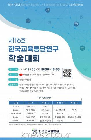 ▲ 사진=한국교육개발원한국교육개발원(KEDI, 원장 류방란)은 한국교원교육학회, 한국교육사회학회, 한국교육심리학회, 한국교육재정경제학회, 한국교육평가학회, 한국교육행정학회, 한국상담학회, 한국심리학회, 한국조사연구학회와 공동으로 11월 25일(금) 오전 10:00부터 오후 6:00까지 ‘제16회 한국교육종단연구 학술대회’를 개최한다.