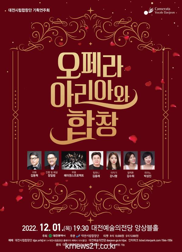또한, 대전의 대표적인 젊은 현대무용단으로 주목받는 ‘메타댄스프로젝트’팀과 팀파니 김용래, 타악기 강나현과 더불어 대전시립합창단 성향제, 박현경, 오미령, 백종순, 채병근, 윤부식, 유승문, 정장호 단원이 오페라 등장인물의 배역을 맡아 노래하며 음악과 무용이 어우러지는 풍성한 공연을 준비했다.