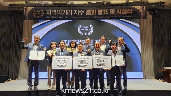 ▲ 사진=충청북도충북도는 24일 대전 롯데시티호텔에서 열린 「2022년 지역먹거리 지수 시상식」에서 참여 우수 광역지자체로 선정돼 농식품부장관상인 특별상을 수상했다.