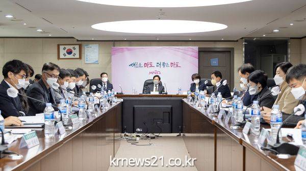 ▲ 사진=제15회 마포나루 새우젓축제 성과보고회 참석한 박강수 마포구청장(가운데)박강수 마포구청장이 11월 24일 오전, ‘제15회 새우젓축제 성과보고회’에 참석해 경제, 관광, 안전, 홍보 등 분야별 평가보고를 받고 내년도 새우젓축제의 개선방안에 대해 논의하는 시간을 가졌다.