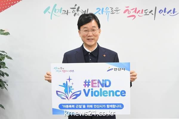 이민근 안산시장은 25일 유니세프 한국위원회와 외교부가 주최한 ‘아동폭력 근절 온라인 캠페인’에 동참했다.
