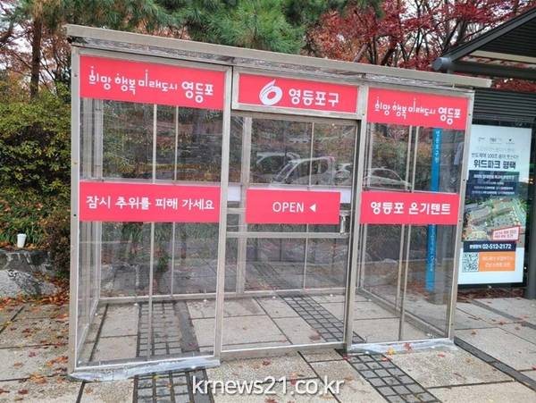 영등포구(구청장 최호권)는 본격적인 한파가 시작된 가운데 오는 12월 5일부터 내년 3월 10일까지 온기텐트를 설치‧운영한다고 밝혔다.