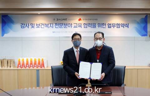 ▲ 사진=한국보건복지인재원한국보건복지인재원(원장 직무대행 박광택, 이하 인재원)은 감사교육원(원장 조성은)과 12월 1일(목) 양 기관의 전문교육 협력을 위한 업무협약(MOU)를 체결했다고 밝혔다.