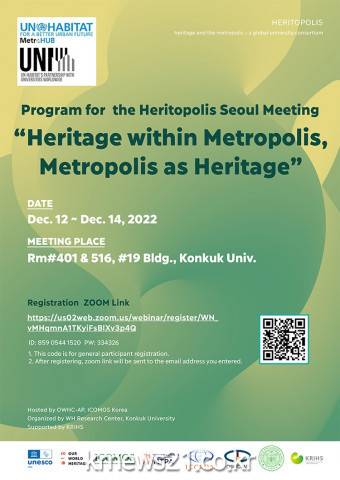 이번 행사는 아태 세계유산도시기구(OWHC-AP)와 이코모스(ICOMOS) 한국위원회가 주최하고, 국토연구원이 후원, 건국대 세계유산연구소가 주관한다. 회의에서는 유엔 해비타트 메트로허브(UN Habitat Metrohub)의 대학 연합체인 UNI 참여 대학을 중심으로 헤리토폴리스 연구 성과와 앞으로 방향성 그리고 유네스코 등 국제기구와 꾸준한 협력망 구축 등을 총 6개의 세션에서 논의한다.