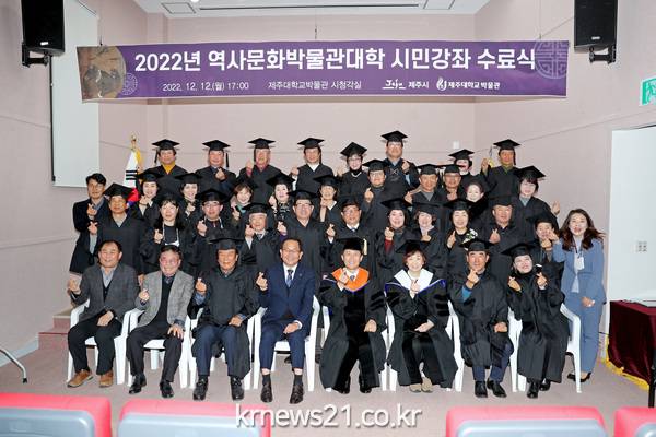 강병삼 제주시장은 12월 12일(월) 17시 제주대학교 박물관에서 열리는『2022년 역사문화박물관대학 수료식』에 참석해 수료자들에 대한 축하와 관계 직원들의 노고를 격려하였다.