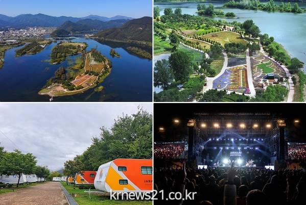 자라섬은 ‘2020 한국 야간경관 100선’에 선정된 약 20만평의 크기로 북한강 가운데 위치하고 있으며, 동도, 남도, 중도, 서도 4개의 섬이 있고, 각 섬마다 계절마다 각각의 다양한 특색을 보유하고 있는 가평 대표적 자연생태관광지다. 대한민국 캠핑의 메카로 ‘가평세계캠핑캐라바닝대회’ 개최지인 자라섬 캠핑장이 있는 서도, 대한민국 대표 축제이자 세계적인 축제로 꼽히는 ‘자라섬 국제재즈페스티벌’이 열리는 축제 공연의 상징인 동도, 약 3만평의 수변정원에 다양한 계절꽃으로 꾸며져 매년 봄·가을 꽃정원 축제가 열리는 자라섬 남도까지 1년 내내 즐길거리가 가득한 축제의 섬이다.