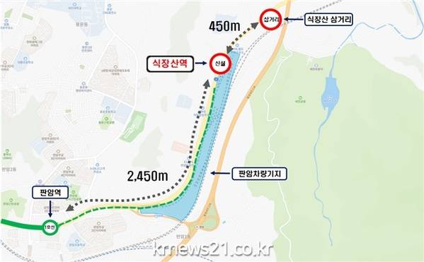 식장산역이 신설되면 판암역에서 식상산삼거리까지 이동거리가 2,900m가 450m로 단축되고, 보행 시간은 47분에서 7분으로 40분 단축될 것으로 예상된다.