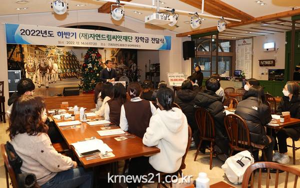 이날 장학금 전달식에는 (재)자연드림씨앗재단(이사장 이희한, 이하 씨앗재단) 주최로 김순호 군수와 씨앗재단 관계자, 장학생 등 20명이 참석한 가운데 구례자연드림파크 비어락 하우스에서 개최하였다.