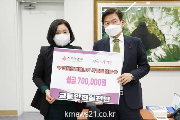 이필형 동대문구청장은 “지역의 어려운 이웃을 위해 성금을 전달해 주신 교통안전실천단에 감사드린다”며, “우리 이웃들이 추운 겨울을 따뜻하게 잘 보낼 수 있도록 꼭 필요한 가정에 성금을 전달하겠다”고 밝혔다.