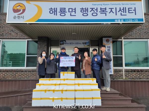 순천시 해룡면에 세밑 지역기부가 이어져 추운 날씨를 녹이는 훈훈함을 전하고 있다.