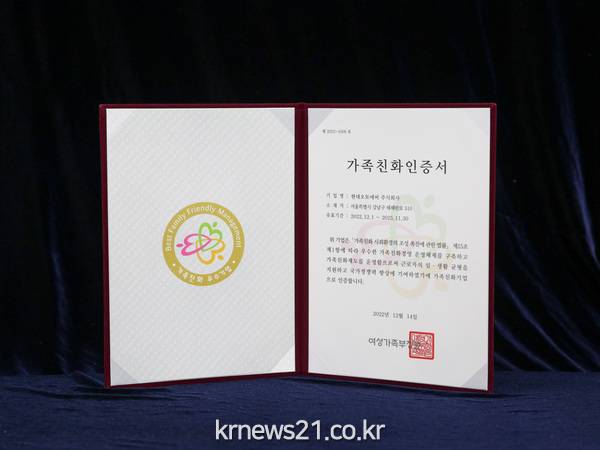 이번 인증은 현대오토에버가 2014년 첫 인증을 받은 이후 2019년 재인증에 이은 세 번째 인증이다. 현대오토에버가 일과 가정의 양립을 위해 마련한 다양한 제도가 높은 평가를 받은 것이다. 현대오토에버는 유연근무제, 가족돌봄휴가, EAP (Employee Assistance Program) 지원 등 가족친화적인 근무 환경 조성에 많은 노력을 기울이고 있다.
