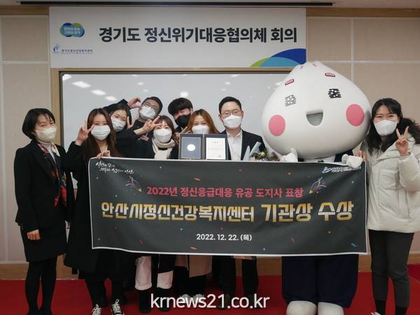 안산시(시장 이민근) 정신건강복지센터는 지난 22일 경기도가 주최한 ‘2022년 정신응급대응사업 평가’에서 경기도지사 표창을 수상했다고 26일 밝혔다.