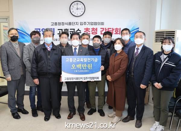 한편, 입주기업체협의회(황기철 대표)에서는 간담회 후 지역 교육환경 개선과 인재 육성에 뜻을 보태기 위해 고흥교육발전기금 5백만 원을 기탁하며, “앞으로도 기업이 지역과 상생하는 좋은 사례들을 많이 만들어 나가겠다”고 밝혔다.