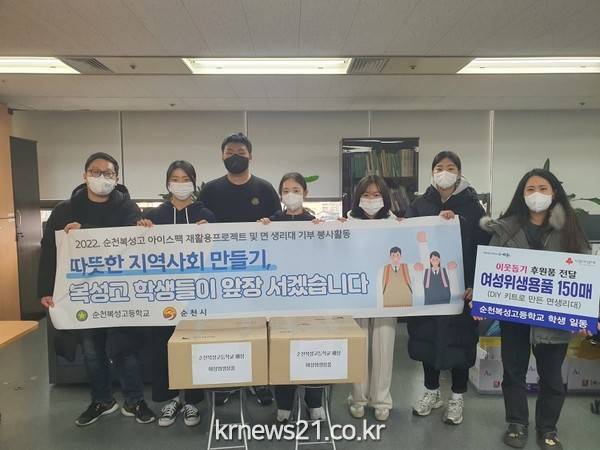한편, 순천시 해룡면에 위치한 복성고등학교(교장 문규열)는 교육부에서 과학중점학교로 선정되어 특화교육 프로그램을 운영하고 있으며, 2020년부터 3년째 여성위생용품, 핫팩 등 후원을 하며 나눔활동을 이어가고 있다.