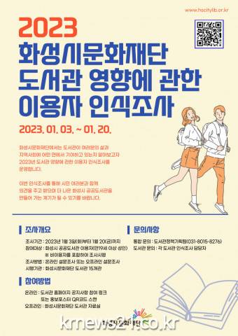 ▲ 사진=화성시립도서관화성시문화재단(대표이사 김종대) 도서관에서 시민을 대상으로 도서관의 사회적 영향에 관한 이용자 인식조사를 20일까지 시행한다.