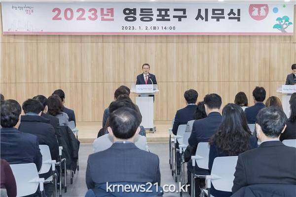 영등포구(구청장 최호권)가 2일 14시 구청 대강당에서 간부 공무원들과‘2023년 시무식’을 개최하고 새해 첫 발을 내딛었다.