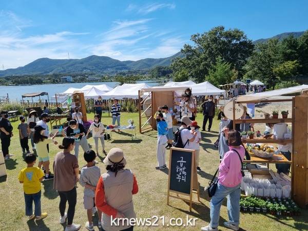 ▲ 사진=관광두레사업에 참여하고 있는 `협동조합 문화와 함께`가 지난 2021년부터 개최하고 있는 용담호수 `뚝마켓`용인특례시가 심혈을 기울여 온 관광두레 사업이 2년간 추가로 국비 지원을 받게 될 전망이다.
