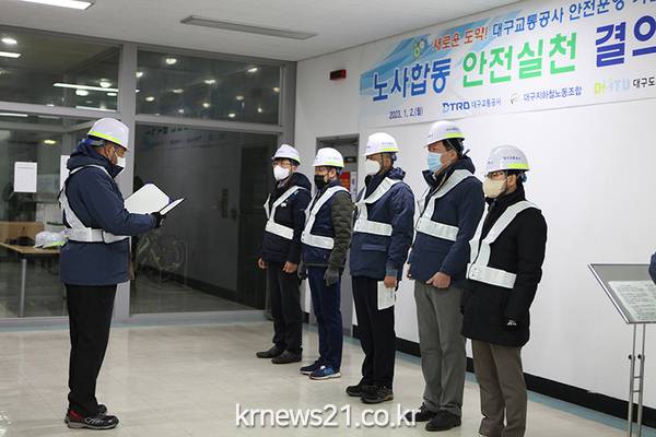 대구교통공사는 1월 2일(월) 06:30 3호선 범물기지에서 사장을 비롯한 노사간부 40여 명이 합동으로 도시철도 안전운행을 다짐하는 ‘새해맞이 노사합동 안전실천결의’ 행사를 가졌다고 밝혔다.