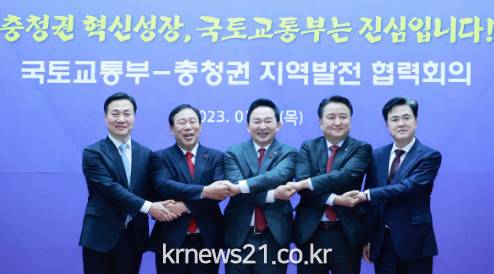 ▲ 사진=대전광역시국토교통부(장관 원희룡)는 1.5일(목) 충청북도 청사에서 최민호 세종시장, 김태흠 충남지사, 김영환 충북지사, 이택구 대전시 부시장과 함께 국토교통부-충청권 지역발전 협력회의를 개최했다고 밝혔다.