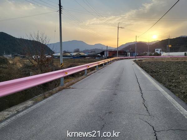 지난해 ‘자연을 경제로 꽃피우는 도시, 가평’ 민선8기 출범에 따라 군정 5대방침인 ‘지금보다 더(THE) 가평, 주민안전은 더 세심하게’ 일환으로 ‘ The 세심한 The 안전한 농로 구축’사업을 수립하고 노후되고 안전시설이 전무한 농로 4,310m 구간에 대하여 컬러 가드레일 설치 및 컬러 도색, 시선유도시설인 델리네이터 설치로 안전한 농로환경을 조성하였다.