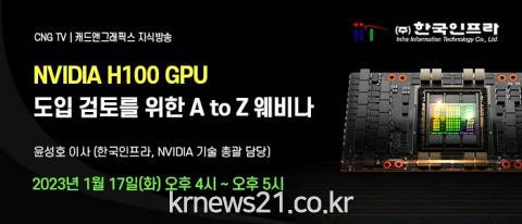 ▲ 사진=한국인프라NVIDIA DGX 분야 파트너 한국인프라는 ‘NVIDIA H100 GPU 도입 검토를 위한 A to Z’ 웨비나를 1월 17일 오후 4시에 진행한다고 밝혔다.