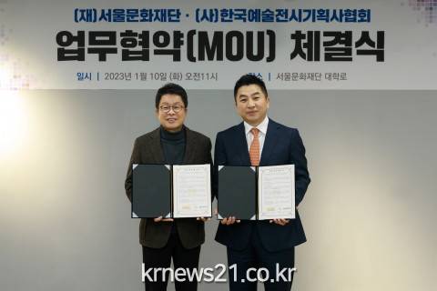 ▲ 사진=서울문화재단서울문화재단(대표이사 이창기)이 사단법인 한국예술전시기획사협회(회장 정용석)와 1월 10일 동숭동 서울문화재단 대학로센터에서 문화예술 발전을 위한 업무협약을 체결했다.
