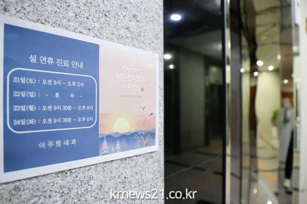 ▲ 사진=용인특례시 처인구 한 병원 엘리베이터에 붙어 있는 설 연휴 진료안내용인특례시(시장 이상일)가 설 연휴 기간동안 응급 진료체계를 구축한다고 17일 밝혔다.