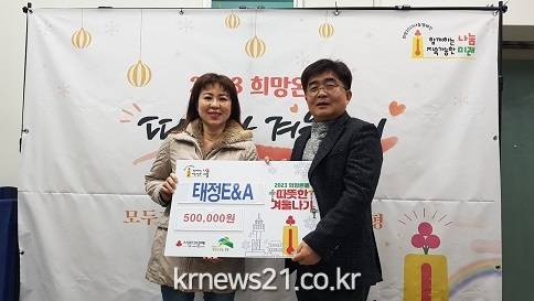 최우정 ㈜태정 E&A 대표이사는 “설 명절을 앞두고 코로나 장기화 및 경제불황 등으로 어려움을 겪고 있는 지역주민들에게 조금이나마 따뜻한 도움이 될 수 있기를 바란다”고 했다.