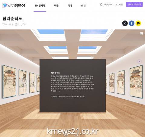 ▲ 사진=제주넷제주넷은 미술가, 큐레이터 등의 예술인 및 전시가 필요한 관광업체들이 온라인상에 3D 가상전시회를 개최하고 이용자들로부터 후원을 받을 수 있는 메타버스형 3D 웹 가상전시 플랫폼인 위드스페이스를 1월 17일 오픈했다고 밝혔다.