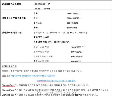 ▲ 사진=LTI글로벌 기술 컨설팅 및 디지털 솔루션 회사인 LTIMindtree[NSE: LTIM, BSE: 540005]가 오늘 이사회에서 승인한 2022년 12월 31일 마감 3분기 통합 실적을 발표했다.