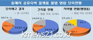 또, 신고가 가능한 업소는 신고를 유도하고, 신고가 불가능한 업소는 임대 영업으로 전환 등 대안을 제시하여 단속 예고를 통보한 114개소 중 32개소(28%)의 적법 영업 신고와 66개소(58%)의 영업 중단을 유도하는 성과를 올렸다.