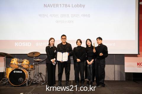 ▲ 사진=아키모스피어한국실내건축가협회가 주관하는 ‘제39회 골든스케일베스트디자인어워드 2022’(이하 골든스케일어워드)에서 아키모스피어(대표 박경식)의 ‘NAVER 1784 Lobby’ 프로젝트가 최우수상인 국토교통부 장관상을 받았다.