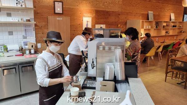 ▲ 사진=‘시니어 북카페’에서 바리스타로 활동하는 모습영등포구(구청장 최호권)가 2월 10일까지 ‘2023년 백세건강 어르신 일자리’ 사업 참여자 311명을 추가로 모집한다고 밝혔다.