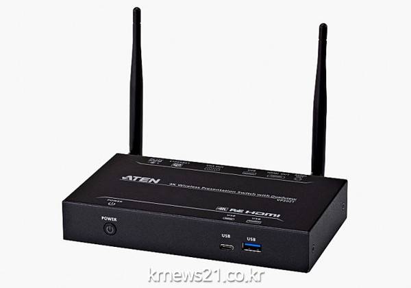 ▲ 사진=에이텐코리아정보 기술, Pro AV, 통신 및 관리 솔루션 전문기업 에이텐(대표 첸순청)은 다중 접속 접근 가능한 4K 해상도 대응 무선 프레젠트온(PresentON) 스위치 2종 VP2020·VP2021 모델을 공개했다.